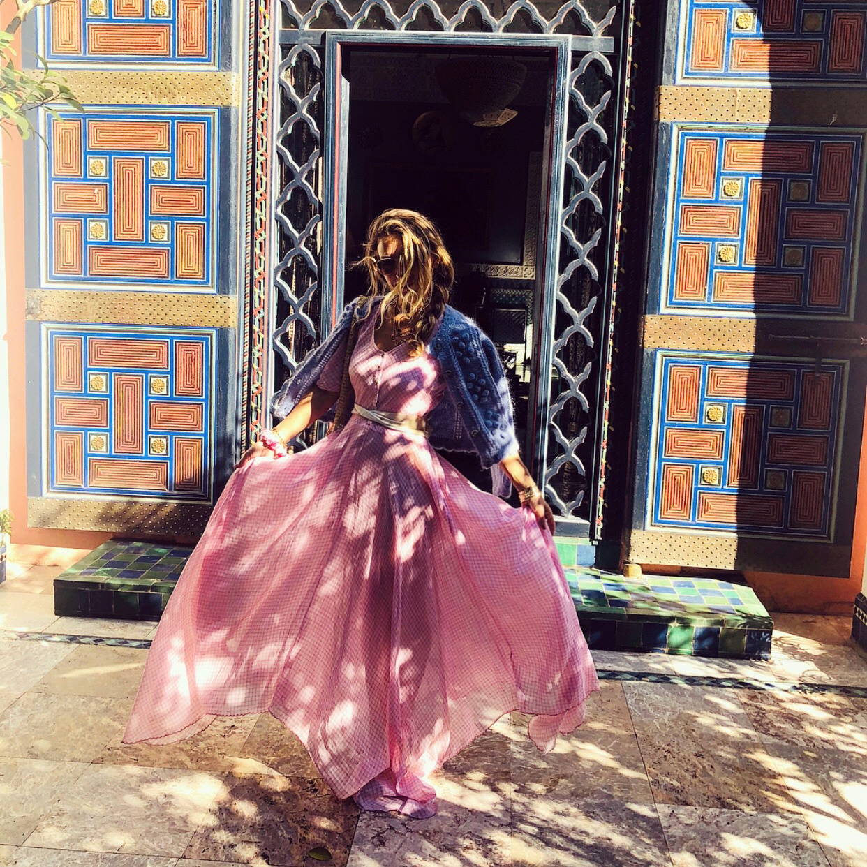Adore the pop of pink in The Coralie against the vintage walls of Morocco.