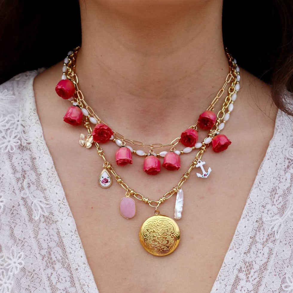 If summer were a piece of jewelry, it would be cast in gold, glinting softly beneath the sun, adorned with a pearl or two, and imbued with the kind of effortlessness only a coastal girl can master. Enter Shells and Roses, the dreamy, vintage-inspired jewelry line capturing hearts (and wrists and necklines) everywhere this season—and showing at LoveShackFancy boutiques this summer.