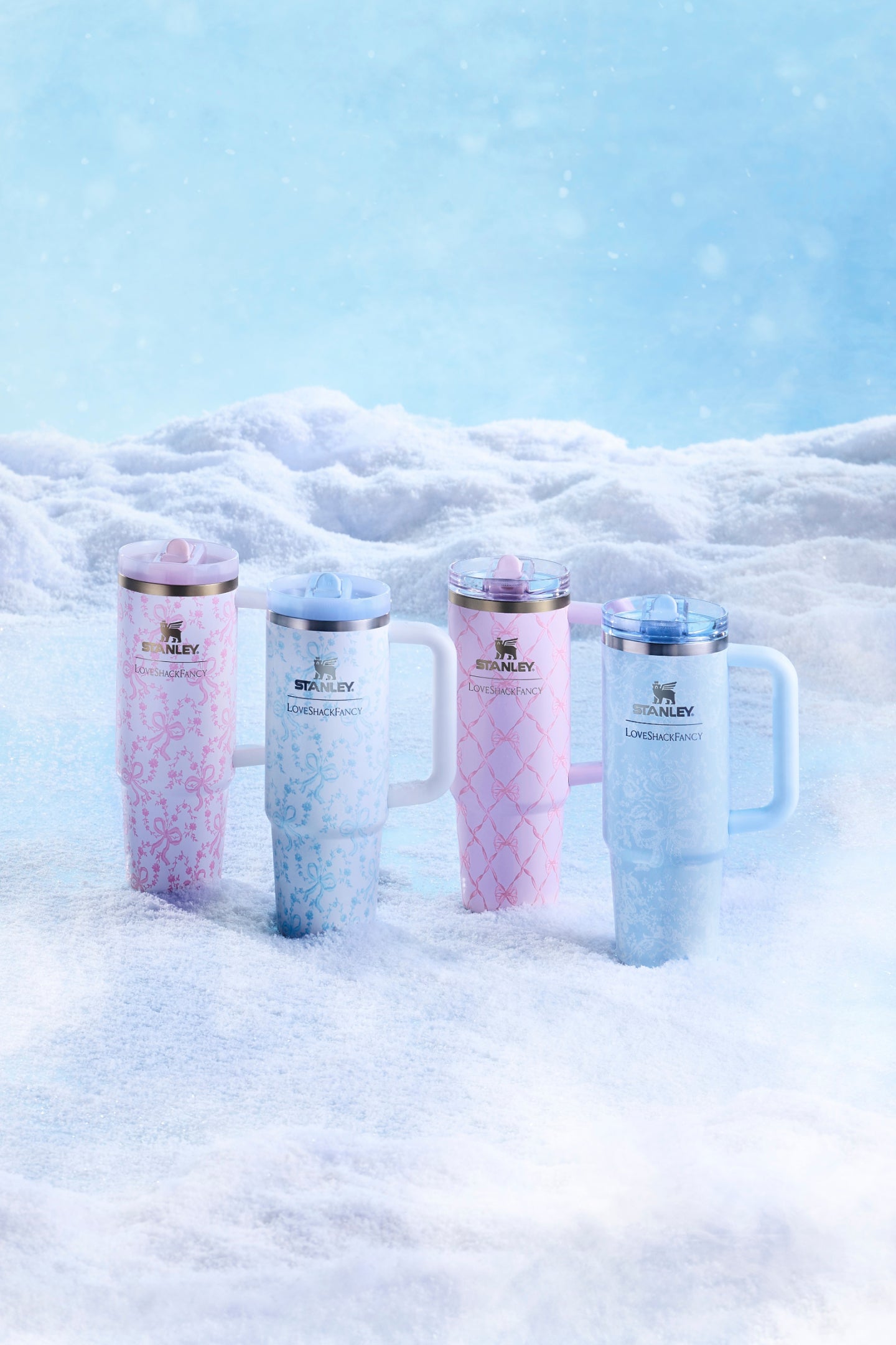 Everyone’s favorite collaboration is back for the holiday season. This keepsake collection arrives in porcelain hues, pinks, and baby blues–dressed up in bows, it’s the perfect gift for the festive season. Get both of our beloved signature prints on Stanley’s best-selling Quenchers in one must-have set.