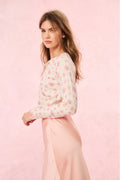 Living in the Adeanne Cardigan. This cute knit is designed from wool, giving it an extra warm and cozy feel. The sweater features our Pasadena Rose print all over for a playful touch. Self-covered buttons line center front.