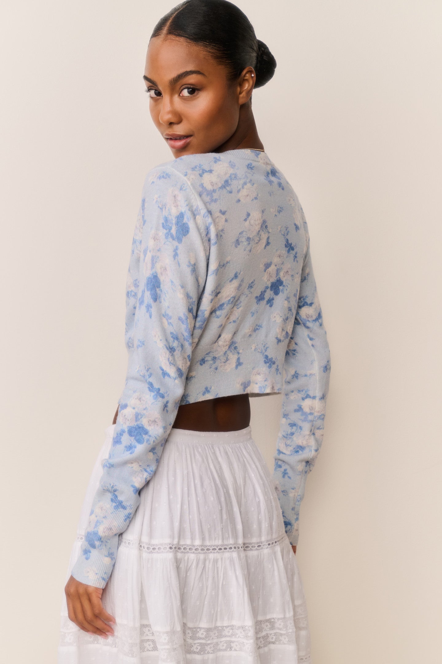 Our favorite Adeanne Cardigan returns in our floral heirloom prints. Extra soft to the touch and designed from a luxe, lightweight cotton-wool blend fabric, this must-have knit is the perfect layer.