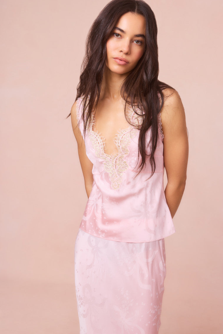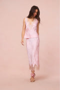 Introducing the Adette Top. The feminine slip top debuts with a silk-blend fabric giving this piece a soft and luxurious look and feel. This cami top stuns with scallop metallic gold lace lining the neckline for a flirty detail.