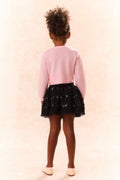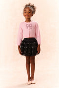 Shimmer and shine in our Advinette Skirt. This stunning mini is all in the details with a charming textured fabric layered with sequin-adorned strips throughout giving this piece a playful flair. The skirt begins with a comfortable, elasticated waistband before falling to a multi-tiered, airy skirt. This piece is perfect for a family event, school play, or her birthday party.