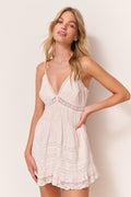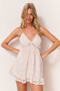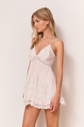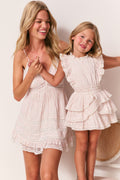 In celebration of our new fragrance, Secret Crush, our favorite Alonna Dress returns as part of our new Secret Crush capsule collection. This Victorian-inspired dress stuns with a lightweight cotton voile fabric printed with our new, signature bow print with a contrast of white laces throughout. This strappy, v-neck mini features an empire waist that releases into a slight handkerchief hem skirt. There’s smocking at the back for ease and comfort, tucking at the waist, and includes pockets.