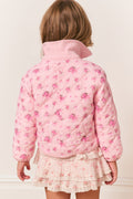 The Aubrina Jacket is the playful, girls’ version of our beloved Quinlette Jacket. Crafted in printed Nordic nylon and quilted in a charming lattice-bow pattern, this medium-weight puffer brings a New England fall vibe to little adventurers. Boxy and hip-length for easy layering, it features a corduroy collar, cinched elastic sleeves, and practical waist pockets—cozy, whimsical, and perfectly sized for youthful fun.