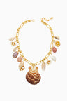The necklace of our beach vacation dreams... a 24k antique gold plated chunky brass chain with an assortment of authentic natural shell charms (some adorned with freshwater pearls set in 24K antique gold plated brass flowers).