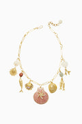 The necklace of our beach vacation dreams...a 24k antique gold plated brass chain adorned with an assortment of authentic vintage shells, semi-precious stones and charms compiled over the past decade.