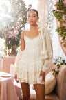 Introducing the Beauval Dress. This charming sun dress debuts with an airy, cotton mesh fabric and a beautiful medley of delicate, vintage-inspired laces and embroideries all over. The mini begins with thin spaghetti straps above a v-neckline that falls to a bodice complete with laces and trims that then releases into a flowy two-tiered skirt at the waist. This dress comes fully lined and includes a zipper for functionality.