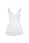 Always the best dressed in the Bensley Dress. This charming mini is designed with an airy, cotton fabric with lace paneling all over. The fitted dress features arrangements throughout the body with pintucking and lace details. This piece is finished with ruffles at the shoulders, necklines and asymmetrical lace ruffles at the hem.