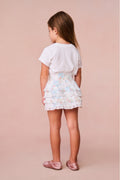 Our beloved Billie Skirt in 100% cotton with our Rosa Beaux print – our original, signature oversized bow. Below a wide smocked waistband, the skirt falls to two shirred tiers with ruffle details.