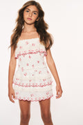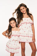 Our beloved Billie Skirt returns as part of our America’s Sweetheart Cotton Collection in 100% cotton with a sweet cherry print. Below a wide smocked waistband, the skirt falls to two shirred tiers with ruffle details.