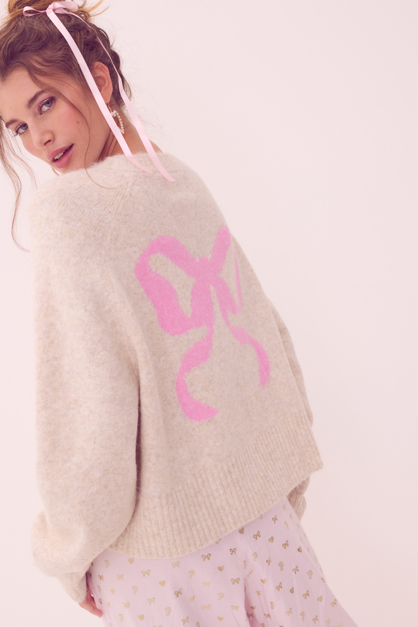 PINK x LoveShackFancy Bow Boxy Crew Cardigan Sweater