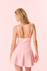 Pretty in pink in the Brinalina Dress. This sweater dress arrives for the summer with a cute contrasting stripe around the neckline giving it a feminine and charming look. The piece begins with full needle straps, a low cut back, a full, airy skirt, and an all over cuff-like stitching.