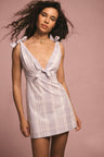 Forever charming in the Brynnie Dress. This pretty mini debuts with a crisp, cotton yarn-dyed fabric inspired by the construction of a scarf. The A-line mini features a scarf as a bodice that ties at the shoulders and the front. The piece is completed with a zipper.