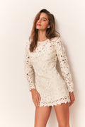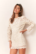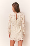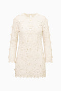 An instant heirloom, our Caletta Dress stuns in sculptural floral embroidery—crafted from custom-designed guipure lace with dimensional blossoms and leafy motifs throughout. Rhinestone and pearl accents catch the light for a touch of subtle shimmer, bringing this exquisite piece to life. The long-sleeve sheath silhouette is slim yet softly structured, falling into a chic mini length that flatters without clinging. Finished with a crew neckline, back keyhole, and hidden zip closure, this timeless piece embodies LoveShackFancy’s signature blend of craftsmanship and romance.