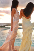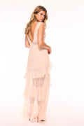 Feminine and ethereal in the Callista Dress. This Bohemian-inspired, effortless diaphanous chiffon stuns with multiple tiers at the skirt, beautiful ruffle layers and details with arrangements of vintage-inspired lace linings. With a sheer and sophisticated look, this piece comes lined with lining stopping at the thigh.