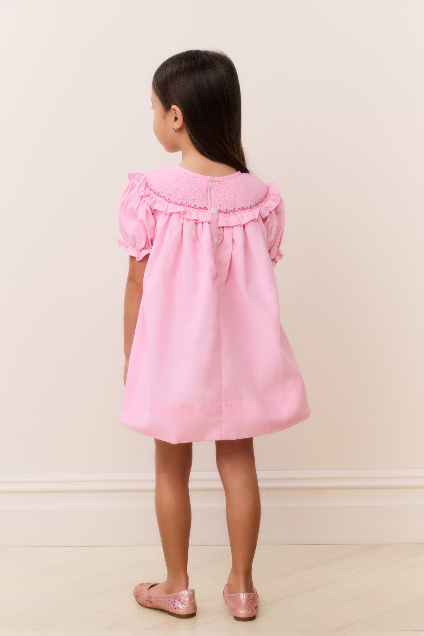 Made with Cecil & Lou, this festive smocked dress features puff sleeves and a crisp ruffle collar with delicate smocked detailing. Perfect for holiday parties, portraits, and seasonal celebrations.