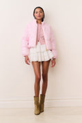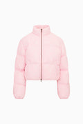 The Celesta Jacket reimagines outerwear with a feminine touch. Designed from quartered lace bonded to lightweight nylon, this cropped puffer blends warmth with delicate detail. Filled with down insulation, it offers cozy protection while maintaining a romantic silhouette. Full sleeves with elastic cuffs, a high collar, and slash pockets at the waist balance function and style, and a front zipper closure makes it effortless to wear. Quilted and cropped, the Celesta is the must-have piece for cold weather layering.