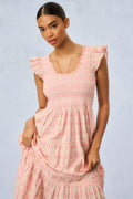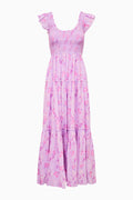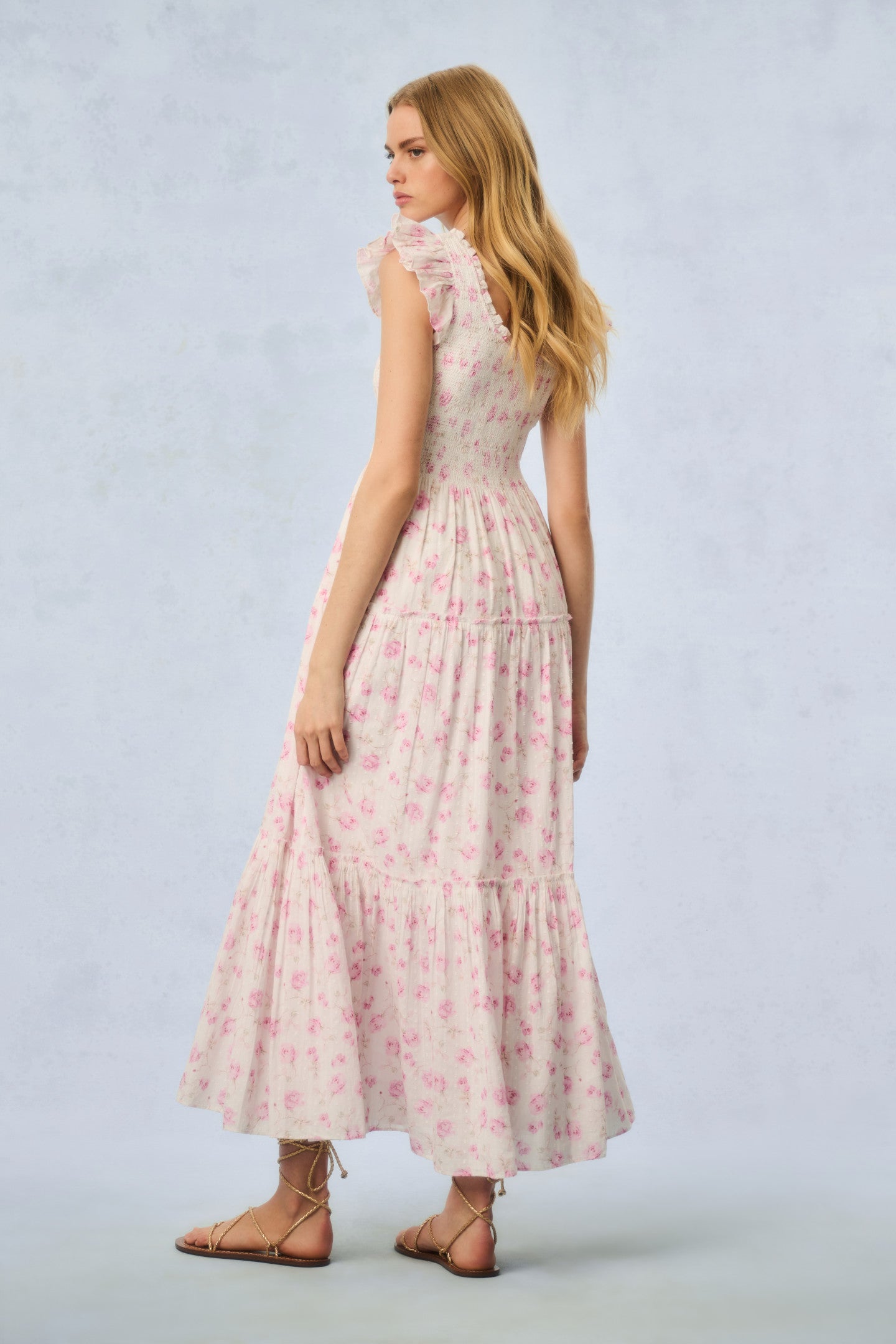 Our Chessie Dress is back as part of our Fragrance Capsule Collection, this time arriving in our best-selling perfume prints. Featured in a floral-printed, ultra-soft cotton, this airy dress is perfect for a date night or soaking up the sunshine. Ruffle sleeves flutter at the shoulders that merge around the scoop neck. The fitted smocked bodice flounces into a dreamy midi skirt decorated with custom lace insets.