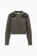 The Clementian Cardigan is a romantic layering piece, crafted in lightweight Pujpu yarn with a cozy blend of baby alpaca, nylon, and wool. This warm, soft cardigan evokes a fair isle-inspired look reimagined through intricate lace ribbon cables, with varied cable stitches tracing the yoke for texture and dimension. Satin ribbons woven around the neckline tie into bows at the princess seams, while custom shell buttons finish the piece with delicate detail. Feminine, textured, and effortlessly dreamy, Clementian is perfect for layering over skirts, dresses, or your favorite high-waist denim.