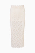 Introducing the Clooney Skirt. This stretch lace, midi skirt is effortlessly chic with scallop at the top edge and self start scallop at the bottom hem. The skirt comes with a lace lining featuring a scalloped edge. The waistband is elasticated making this piece easy to pull on.