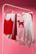 Introducing the Lace-Trim Tank Top from our exclusive, limited-edition PINK x LoveShackFancy collaboration. This soft and stretchy tank arrives with feminine lace details in all the right places. She also matches our silky, boxy pajamas shorts.