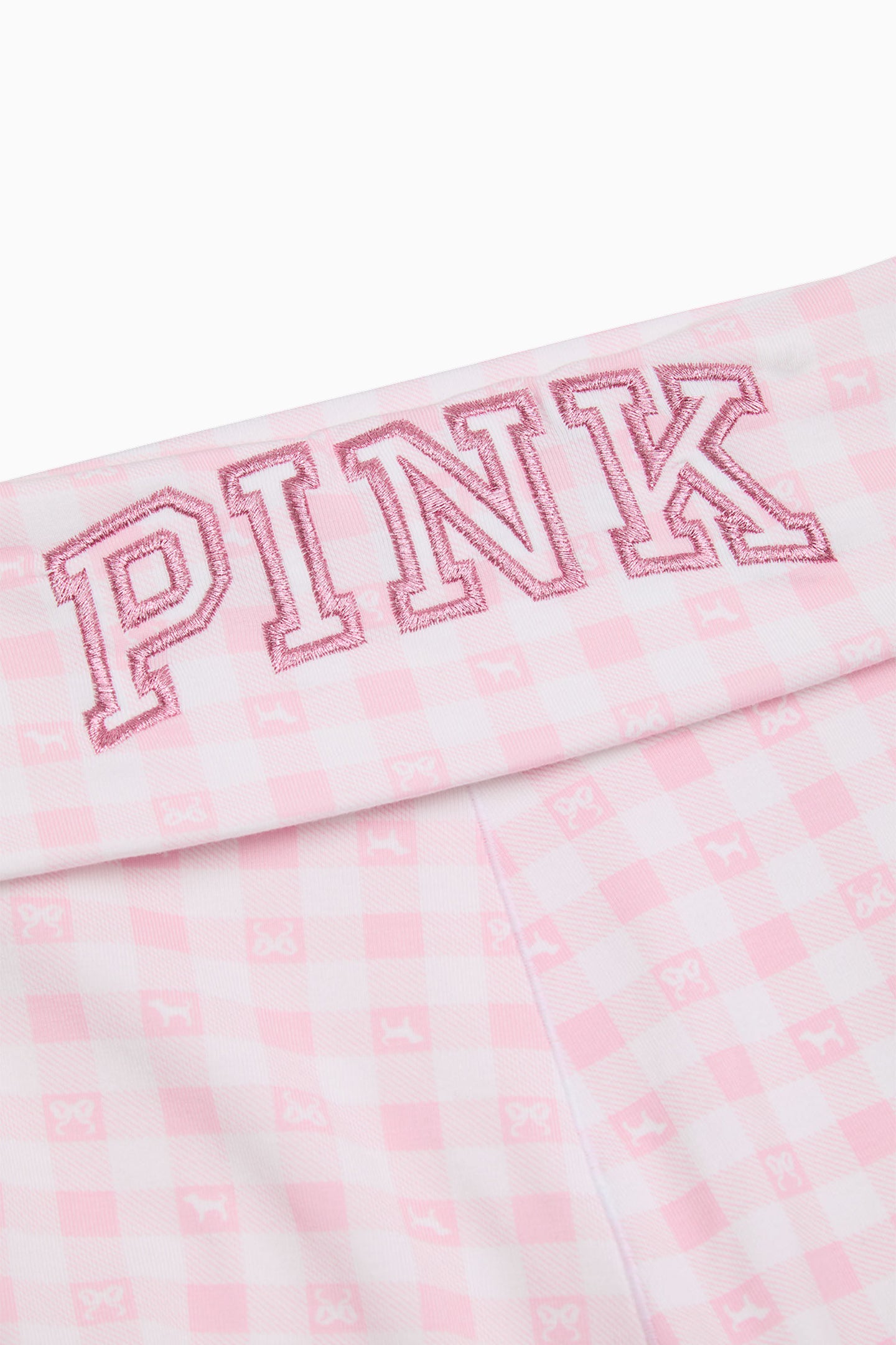 Introducing the Cotton Foldover Flare Leggings from the exclusive, limited-edition PINK x LoveShackFancy collaboration. PINK’s  iconic foldover faves you know and love just got even more iconic with our feminine touches. You now have three new versions to choose from—a preppy pink tartan pattern, a cute and comfy grey with floral finishes, or a vintagey washed pink hue. Outfit idea: Wear with the PINK x LoveShackFancy Cotton Cami.