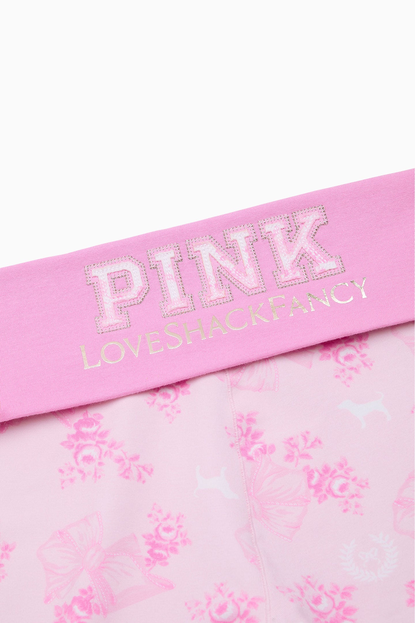 - PINK x LoveShackFancy logo at back of waistband
