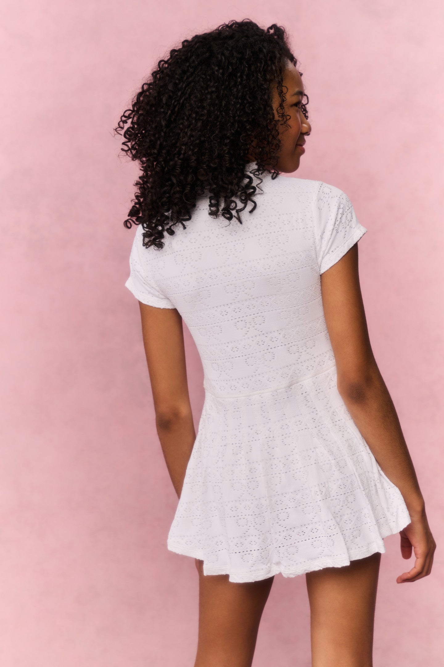 A sweet and playful pick for every tween's wardrobe, the Courtley Tween Dress is designed in a charming pointelle pattern with a fit and flare silhouette that's effortless. This lightweight mini features a point collar, short sleeves, and a fitted bodice that flows into a flirty skater skirt. Finished with convenient side pockets and stretch for all-day comfort, it's perfect for twirling through any adventure.