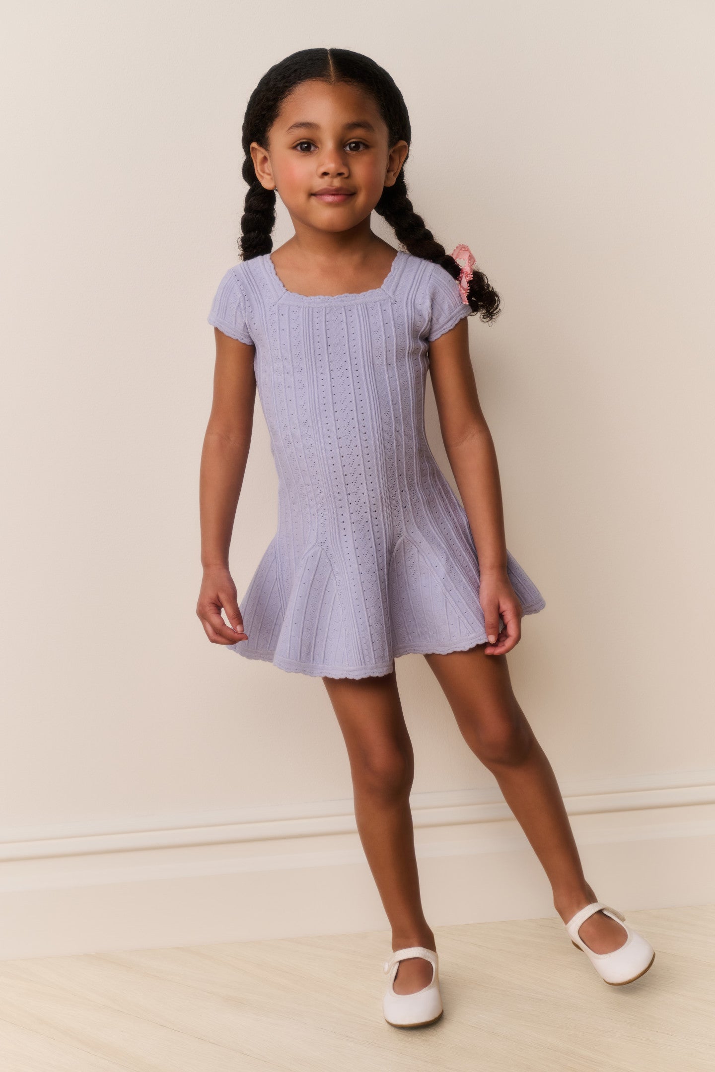 A feel-good favorite, the Daffron Girls’ Dress features a flirty fit-and-flare silhouette in a soft knit fabric. Designed with a square neckline, short sleeves, and finished with a ruffled hem that moves with every step. Light, comfy, and perfect for everyday fun.