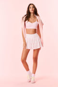 For the girls serving looks on and off the court, the Dancia Skirt makes its debut. Effortlessly chic, this pleated mini arrives in our ultra-soft, breathable active quality designed for movement. The piece includes built-in shorts made from a lightweight, stretch mesh material, a side slash pocket, and an elasticated waistband for ease and comfort. Pair with the Kudura Top for the full set.