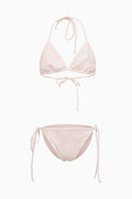 She’s sunshine ready in the Dannie Bikini. This pretty swimsuit features playful prints all over the top and the matching bottoms with self-tie details. The halter top includes self tie detail for functionality.