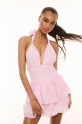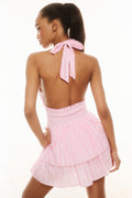 Everyone’s favorite Deanna Halter Dress is back as part of our Upcycled Icons Collection, a limited-edition, sustainable capsule featuring our best-selling silhouettes made from remnant LoveShackFancy fabrics. This low-cut convertible halter ties in a generous bow at the neck and can be crossed at front. Below a wide smocked waistband, the skirt flares to smaller details at the hips and two ruffled tiers.