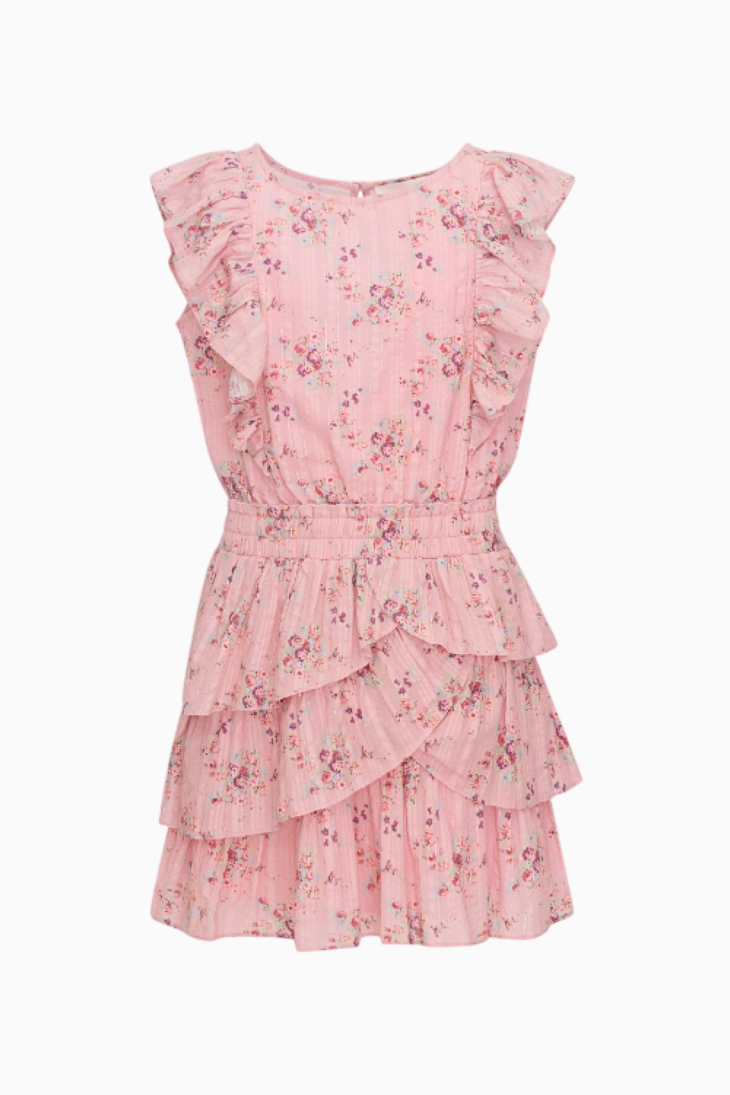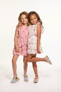 Our Decker Dress returns as part of our Upcycled Icons Collection, a limited-edition sustainable capsule featuring our best-selling silhouettes made from remnant LoveShackFancy fabrics. Our Decker Dress for girls arrives in 100% cotton with custom lace. This easy frock has a ruffle-trimmed collar, buttons down center front, flutter sleeves, an elastic waist and overlapping asymmetrical ruffles at the skirt.