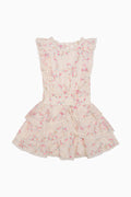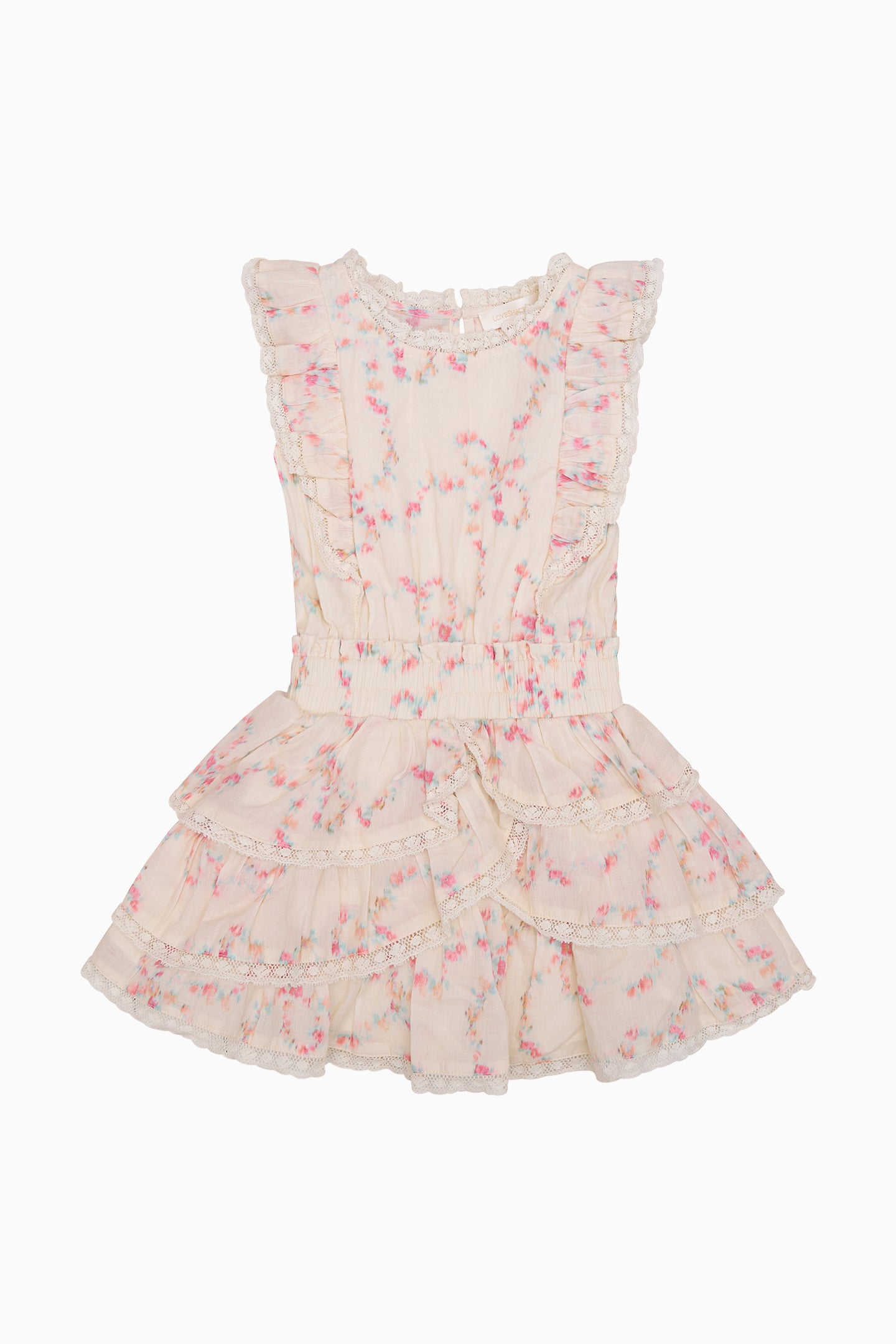 Our best-selling Decker Dress returns for the girls in 100% cotton with custom lace. This easy frock has a ruffle-trimmed collar, buttons down center front, flutter sleeves, an elastic waist and overlapping asymmetrical ruffles at the skirt.