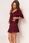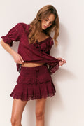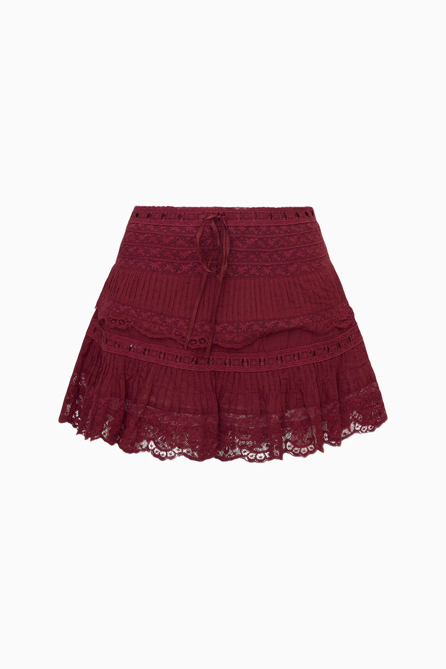 Day dreaming in the Delphie Skirt. This stunning A-line mini is designed from a cotton voile fabric. A ribbon is threaded through the waist while the hip yoke stuns with lace followed by the tiered lace skirt. Extra easy, extra dreamy.