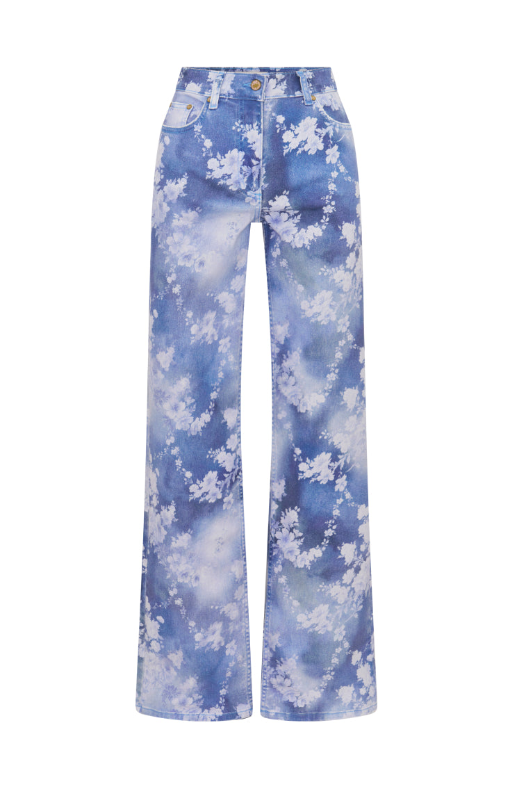 The Dessa Jeans return for the spring with a washed, hand-dyed look featuring a floral print all over. These mid-rise, wide-leg boyfriend jeans have an easy, loose fit and are finished with a center fly zipper and button closure. Pair with Emika Top for a full set.