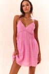 The Docilia Dress returns as part of our Upcycled Icons Collection, a limited-edition, sustainable capsule featuring our best-selling silhouettes made from remnant LoveShackFancy fabrics. Warm weather perfection, this flirty mini dress has a flattering silhouette with lace insets and pintucking details. The dress features a smocked back, spaghetti straps, and an airy skirt finished with lace.