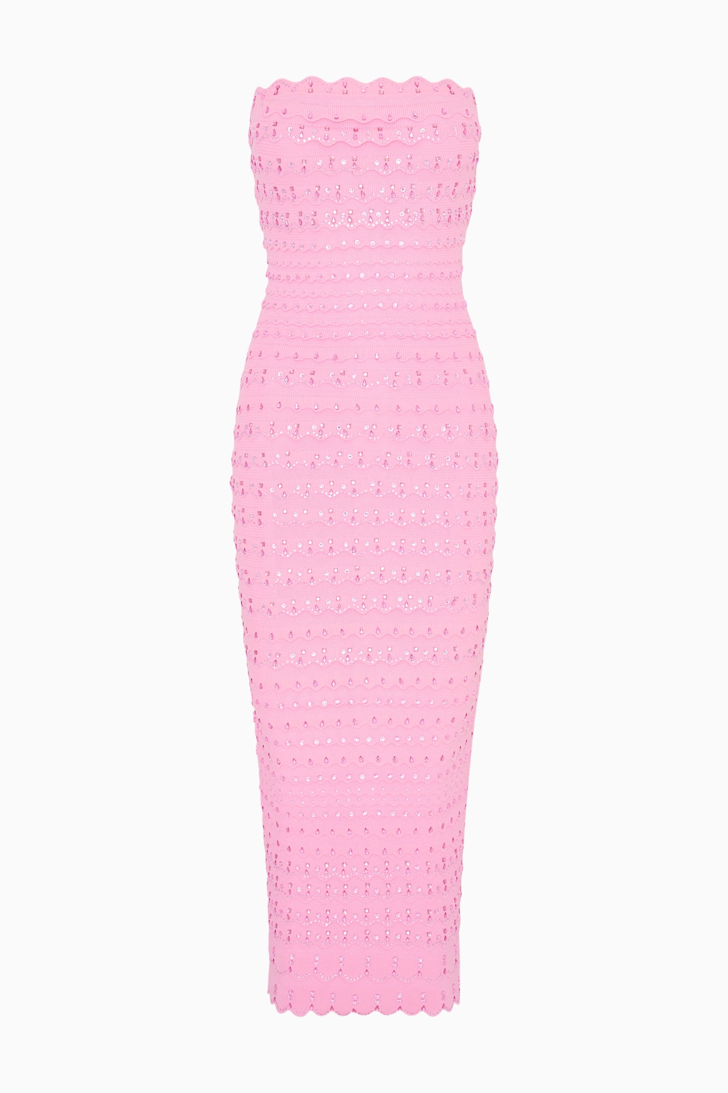Effortlessly chic and flirty, the Eclipse Dress is designed from a stretchy knit fabric with a compact fit that smooths and flatters. This strapless column midi dress features a two-way back zipper, allowing you to adjust the slit height for a customizable, sexy finish. Designed to shimmer subtly with dimensional scallop texture, the Eclipse Dress balances minimalist lines with a touch of femininty—ideal for evening moments that call for understated drama.