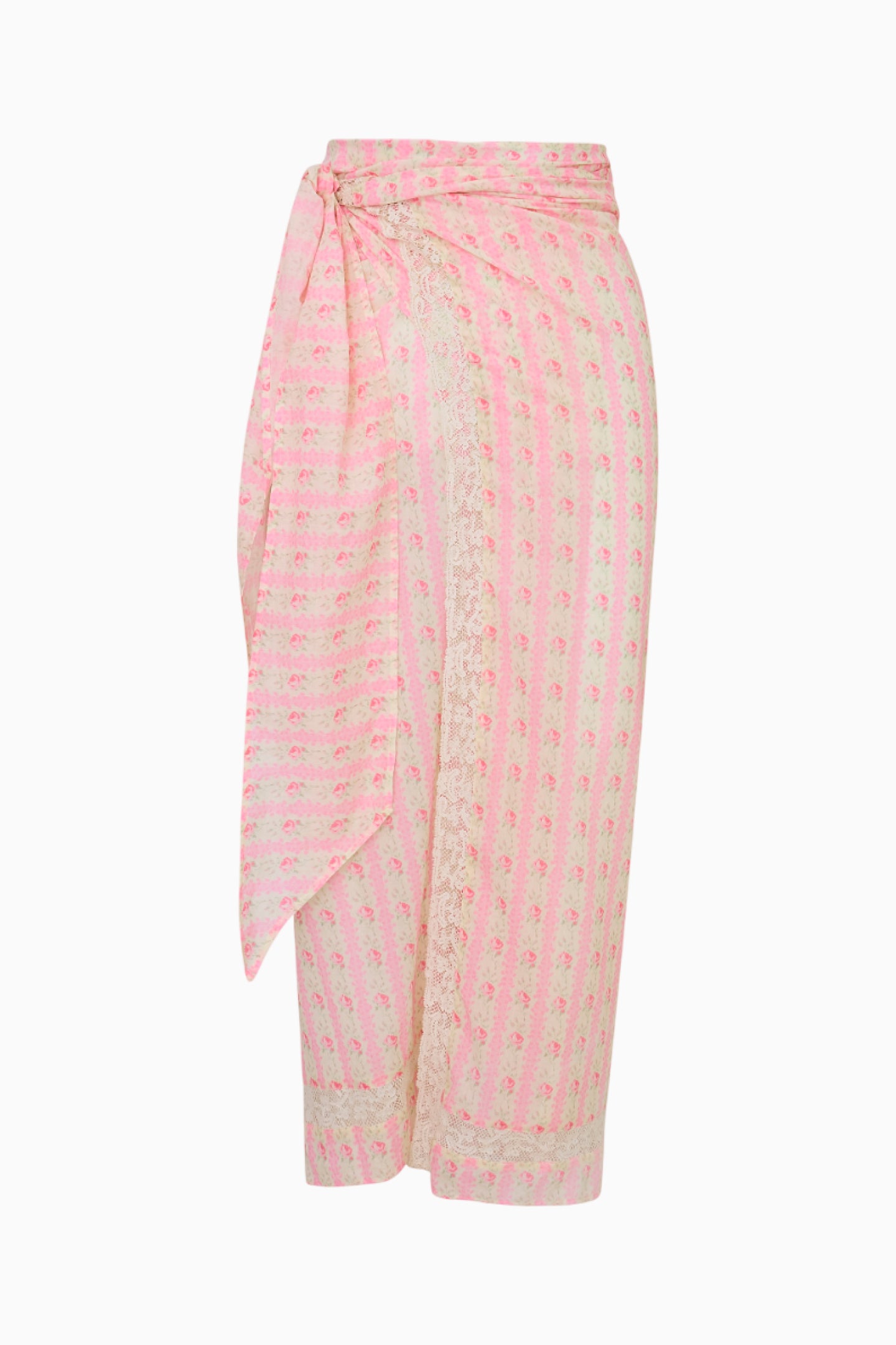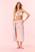 Introducing the Emabella Sarong. This pretty wrap cover-up stuns with our signature fragrance prints and lace trims throughout and a self tie detail. Wear over your favorite swim.