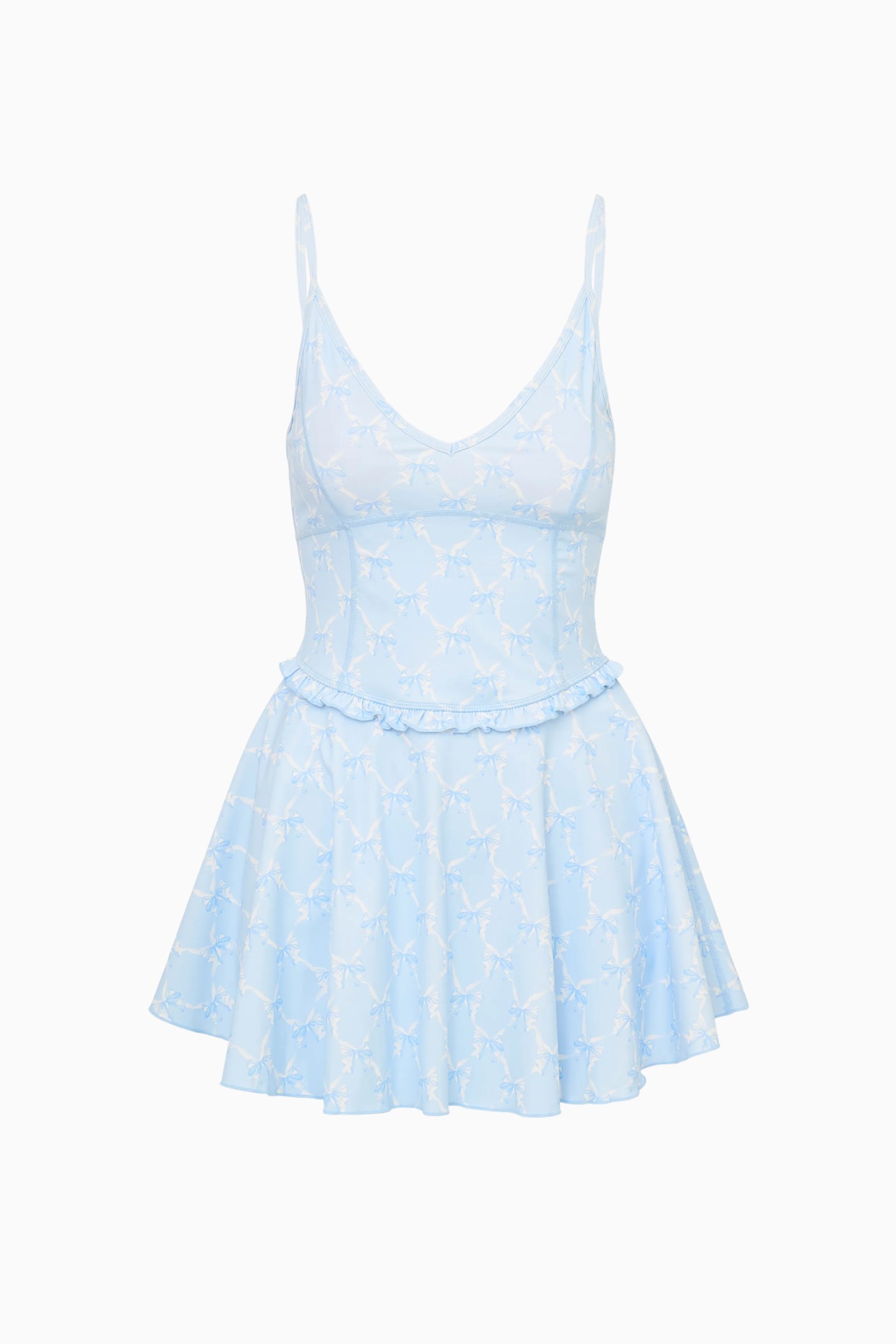 Introducing the Ergo Dress. Delicate spaghetti straps lead to an adjustable back for the perfect fit, while an empire seam and princess stitch detailing flatter and define the silhouette. The skirt falls into a full, flouncy shape with a subtle inset ruffle at the waist — a dreamy, feminine touch that moves beautifully with you. Inside, built-in shorts with tennis ball pockets keep things practical, and removable bra cups offer customizable support. It’s the ultimate active dress for court days, coffee runs, and everything in between.