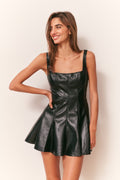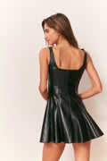 A fresh take on feminine edge, our Fauber Dress is crafted from supple vegan leather that feels as soft as it looks. This chic mini features a flattering scoop neckline with wide-set delicate straps and a fit-to-flare silhouette defined by princess seams that release into a gently flared skirt. Fully lined for comfort, the look is finished with a hidden back zipper for a seamless fit.