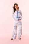 Feeling cute in the Fawna Pant. These summertime bottoms arrive with a knit crochet fabric featuring stripes woven throughout and a scallop detail at the leg holes. Airy and loose, the pants are finished with elastication at the waistband for ease and comfort. Pair with Floraine Cardigan for a full set.
