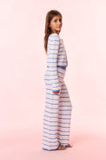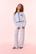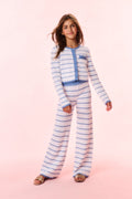 Feeling cute in the Fawna Pant. These summertime bottoms arrive with a knit crochet fabric featuring stripes woven throughout and a scallop detail at the leg holes. Airy and loose, the pants are finished with elastication at the waistband for ease and comfort. Pair with Floraine Cardigan for a full set.