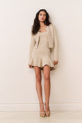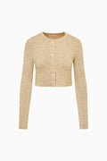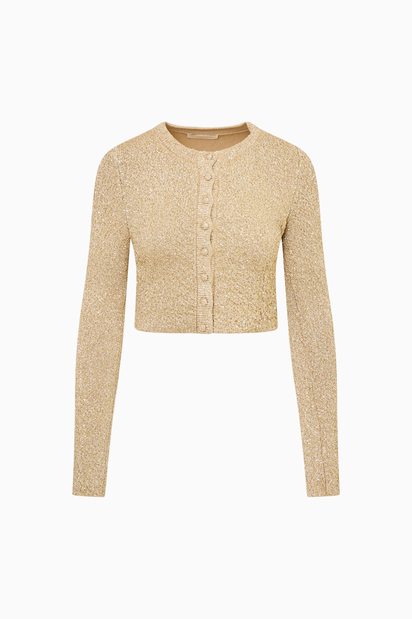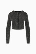 The Ferra Cardigan makes its debut. With the sequins knit throughout, the fabric is soft, compact, and comfortably stretchy without scratchiness. This fitted cropped cardigan features a classic crewneck and clean trim for an elevated, versatile silhouette. A festive, refined piece that adds shimmer and polish to any outfit.