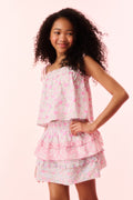 Introducing our latest capsule collection Made with Liberty Fabrics designed into our favorite elevated pieces.The Fiorella Top returns in Liberty's Tana Lawn™ cotton fabric with a floral print all over. This pretty sunshine piece features thin straps with a bow detail, an eyelet neckline, a large bow embroidery, and a scalloped hem with eyelet detail.