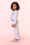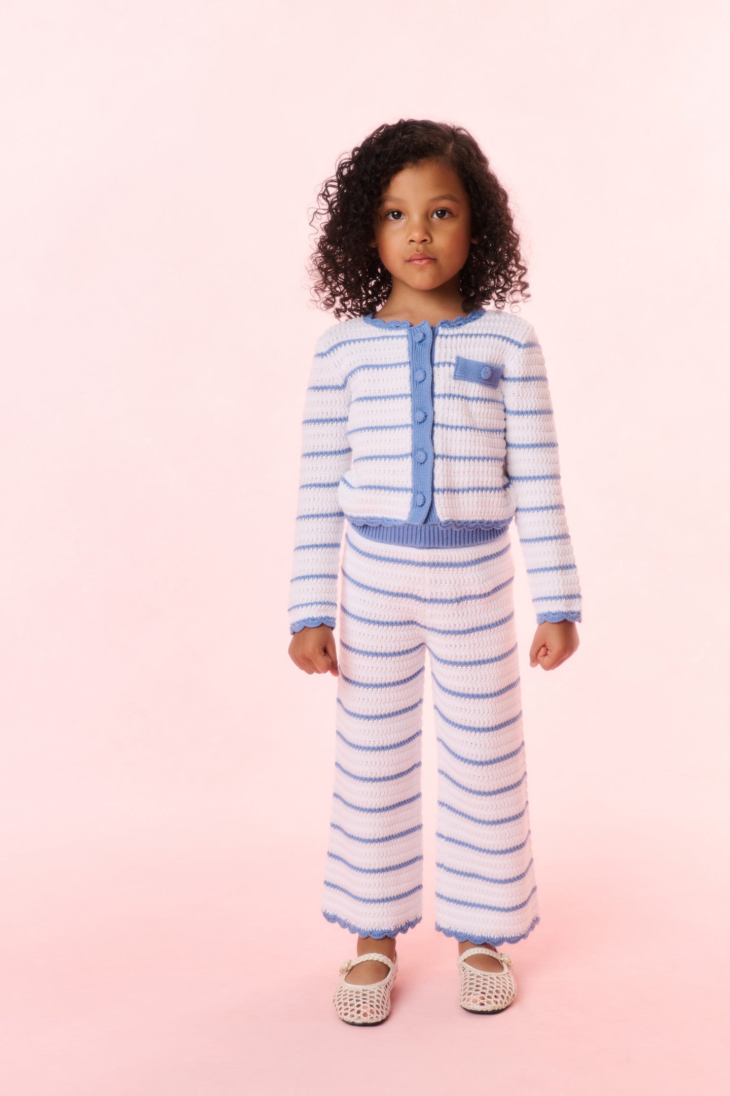 Introducing the Floraine Cardigan. This lightweight knit features a knit crochet fabric featuring stripes woven throughout. Pair with the Fawna Pant for a full set.