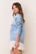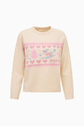 The Francie Pullover is a cozy, holiday-ready classic. Crafted from 100% merino wool, it features festive winter motifs knitted throughout for a playful yet elegant touch. The classic pullover shape with ribbed hem keeps the fit timeless and comfortable, perfect for layering over skirts or jeans.