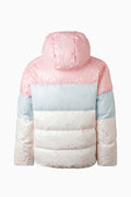 Introducing the Franzi-D Outdoor Jacket from our BOGNER FIRE+ICE x LoveShackFancy collaboration. The cold weather piece arrives in new, limited-edition whimsical prints and pastel hues. This warm jacket features puffy down, a detachable hood, sleeve with keycard pocket on lower left, snow gaiter, and an inside zipper pocket.