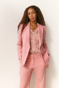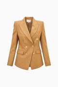 The Gillian Jacket is a modern classic, crafted in our Italian-inspired, smooth twill blend of wool, polyester, and viscose, for comfort and structure. Designed double-breasted and nipped at the waist, she hits at the hip with a slim, tailored silhouette, wide lapels, and structured shoulders. Slim sleeves and flat side pockets complete the sophisticated look, making her the perfect blazer to elevate any suit set or pair with the Amberelle Pant for a full set.
